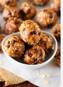 Want an easy snack? 4 Oat-based granola bites blended with protein powder and peanut butter — an easy, high-protein snack to grab and go.